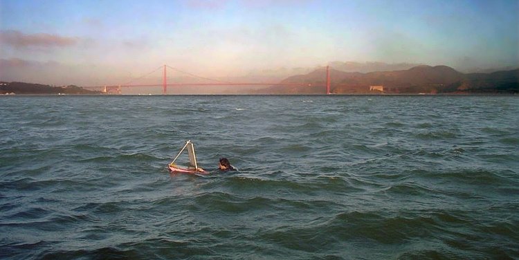The world's one-and-only swim painter to swim (and paint) nearby Terkukor Island